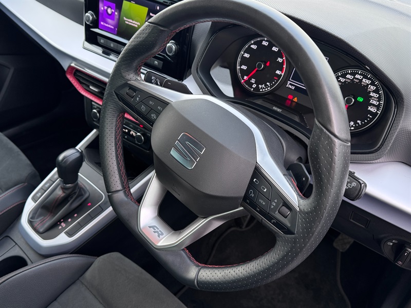 - Perforated Leather Flat-Bottomed Steering Wheel with Red Stitching and FR Logo with Leather Gear Knob and Handbrake